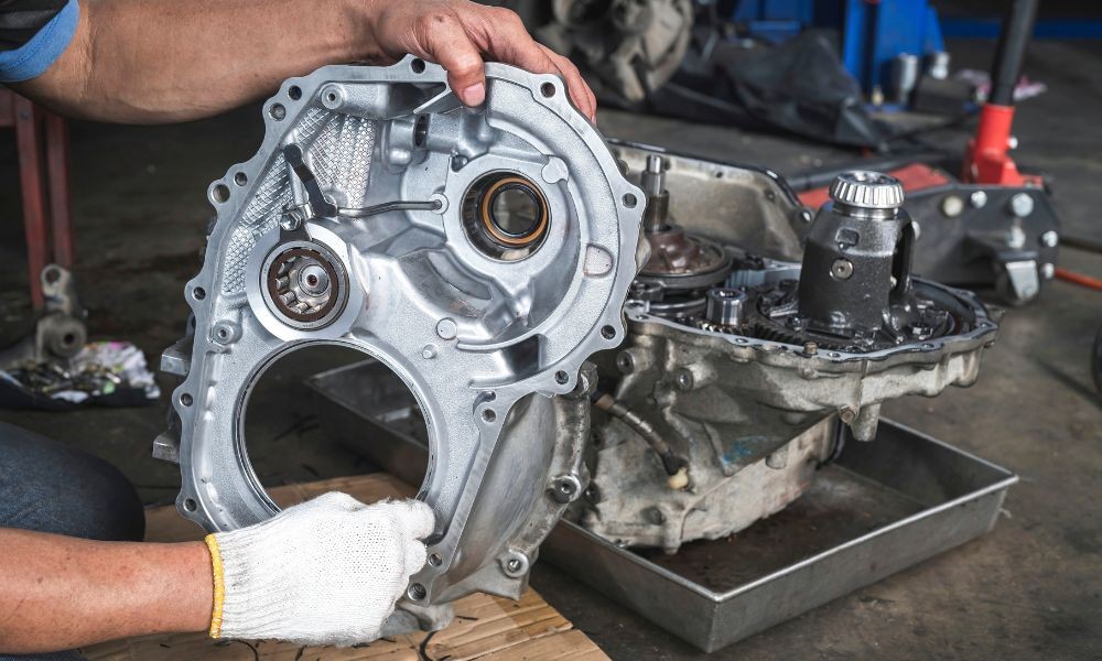 Fluid leaks from gaskets, seals, or cooler lines reduce fluid levels and cause performance issues. These are external repairs that do not require transmission removal.